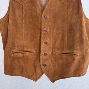 Vintage Sears The Leather Shop Vest Mens 38 Regular Brown Suede Western Button