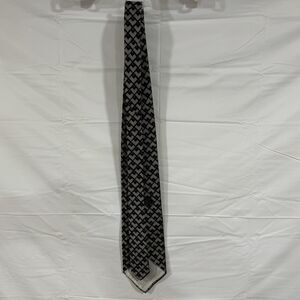 Add a touch of retro style to your wardrobe with this vintage Sears The Mens Store tie. The gray, black, and pink diamond-shaped argyle pattern is sure to catch the eye, making it perfect for the business man, dad, teacher, lawyer, or coach. The tie is made of polyester satin making it a timeless addition to any collection. This tie is a one-of-a-kind piece, with a unique abstract theme that sets it apart from the rest. Made in the United States, this pre-owned tie is a must-have for any fashion-forward gentleman.