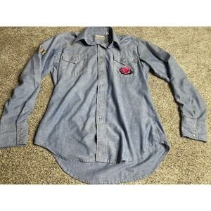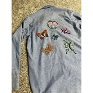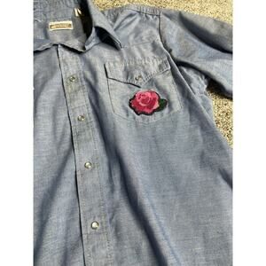 Vintage Sears Western Wear Pearl Snap Shirt Butterfly Flower Appliqué 15-15.5
