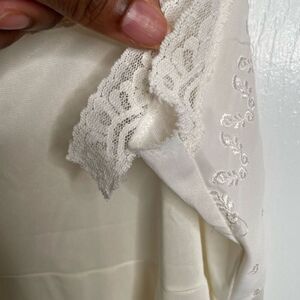 Vintage Preowned flawed condition. Lace partially detached from bust, see photo.
