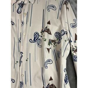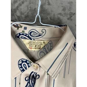 This vintage blouse from Sears is a must-have for any fashion enthusiast. The blue floral pattern on a polyester material makes it perfect for casual occasions. The shirt, which is part of the Fashion Place Perma-Prest collection, is an original piece from the 1970s and is in excellent condition. With a size of L and a size type of regular, it is sure to fit comfortably. Get your hands on this unique piece of clothing from Korea and add it to your collection today.