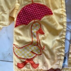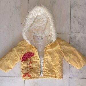 Vintage Sears baby jacket, yellow with duck and umbrella, hooded, size M, 12 mo?