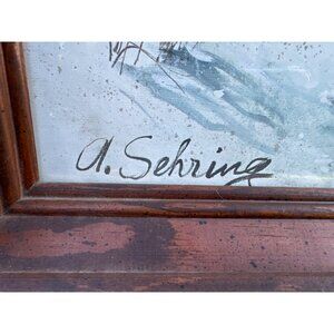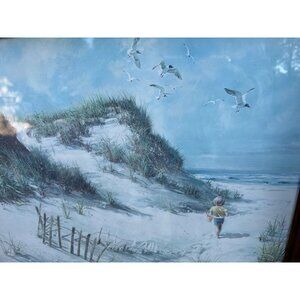 Vintage Seascape Beach At the Beach Scene Framed Art Lithograph Print By A. Seh