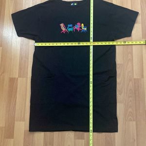 Vintage Seaside Long T Shirt Dress Embroidered Chairs Front Pockets Women OS