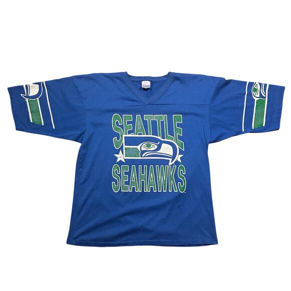 Vintage Seattle Seahawks V-Neck Sleeves Graphic T-Shirt 80s/90s NFL