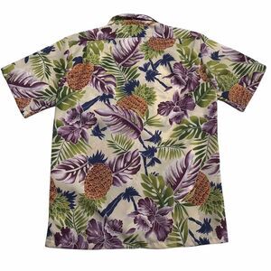 New old stock vintage Seawind Hawaiian shirt with Hilo Hattie tag still attached. Beautiful tropical print. Pointed collar. Left chest pocket. 100% polyester. Light and silky.