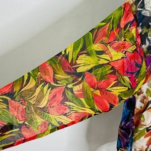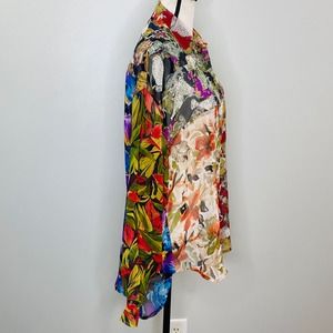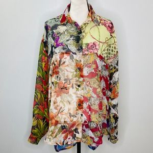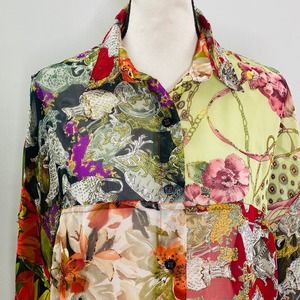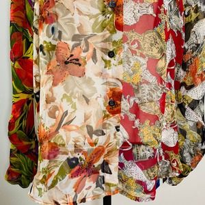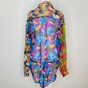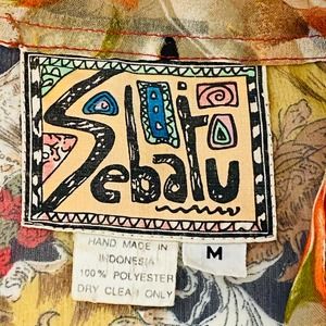 Vintage Sebatu Wearable Art Sheer Mixed Media Beaded High Low Button Down Long Sleeve Top Womens Medium 80s Art to Wear Boho Hippie Maximalist