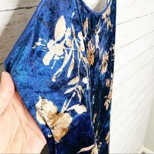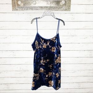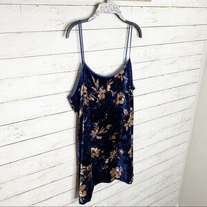 Vintage Secret Treasures Blue Velvet Floral Chemise Lingerie Slip Dress