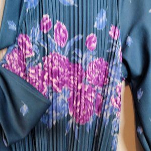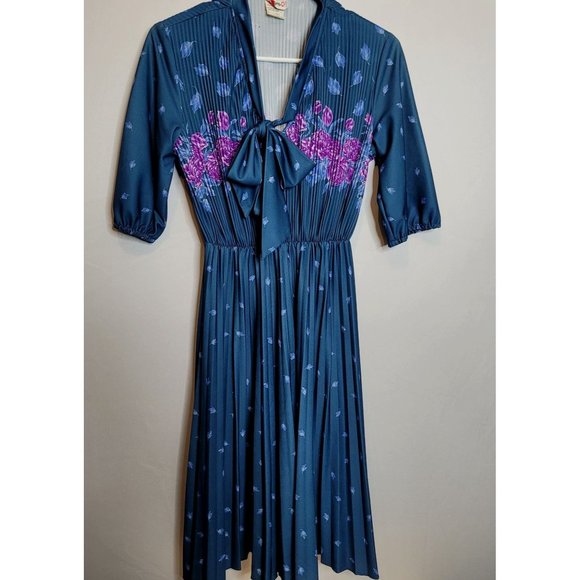 Vintage Secretary Dress Queens Row Polyester Size 8MP Pleated Bow Tie Neck