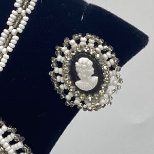 Vintage Seed Bead Cameo Set Necklace Earrings NEEDS REPAIR beautiful Unique
