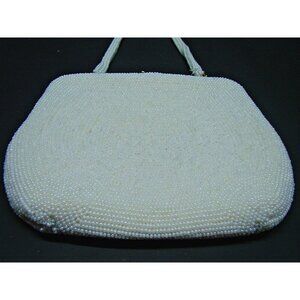Vintage Seed Bead Mini Kiss Lock Bag Purse White Safco Evening Clutch Handbag 5"