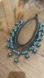 This stunning necklace features intricate blue beadwork, perfect for adding a touch of elegance to any outfit.