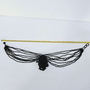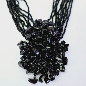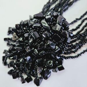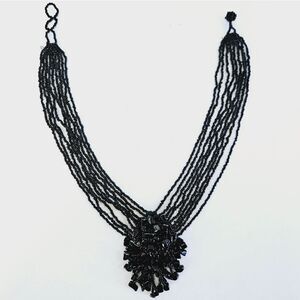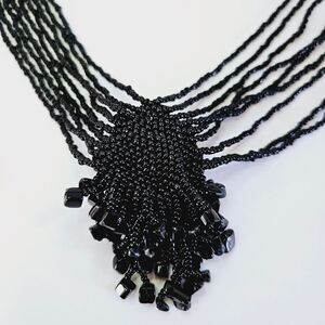 Vintage Seed Beaded Multi Strand Cluster Black Onyx Statement Collar Necklace