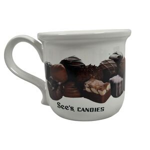 Lot of 2 large vintage See’s candy coffee mugs (candy truffles and Mary See)