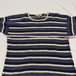 Vintage Segue Womens Sweater Tunic Long Striped Crochet Fisherman Ribbon Blue