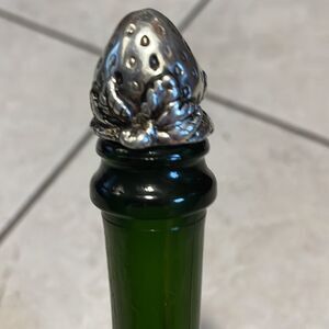 Vintage Segura Viudas glass dark green empty vine bottle with lid, Pewter decor.