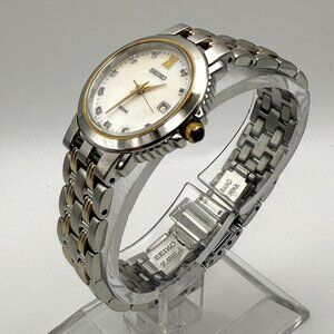 Vintage Seiko MOP Silver Gold Diamonds Accents Ladies Watch Working