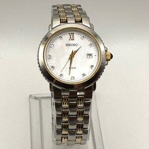 Vintage Seiko MOP Silver Gold tones with Diamonds Accents Ladies Watch Working, new battery installed.