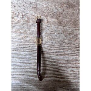 Vintage Seiko Quartz Rectangular Ladies Watch Brown Leather Strap Runs New Batte