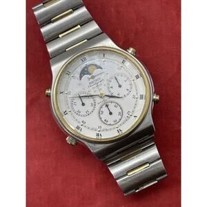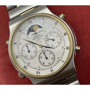 Vintage Seiko Sports 100 Moon Phase Chronograph Two Tone Quartz Watch.