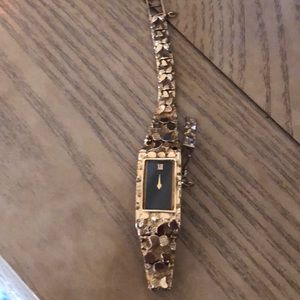 I’ve had this watch for over 40 years and it’s a one of a kind. I had my jeweler set it in a 14kt gold case and a gold nugget band. You will never see another like this one. Gold was less expensive then than now. 24 grams of gold. It has a double lock and safety chain.