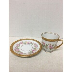 Vintage Selb Bavaria Germany Heinrich Demitasse Cup Saucer Set Floral Gold