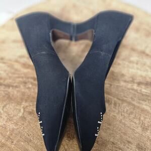 Vintage Selby Black Pumps Rhinestones Dress Kitten Heels 90s Comfort Flex Size 8