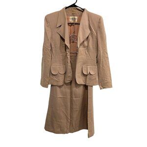 Vintage Selby Bonfields Birmingham Suit Set Tan Blazer Skirt Virgin Wool
