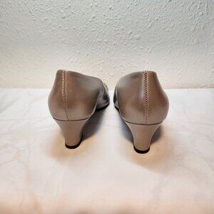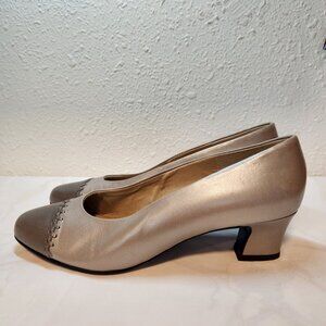 Vintage Selby pumps. Women's size 6.5, two tone gold metallic color, stitching across toe cap.