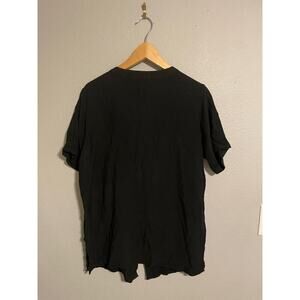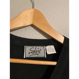 Vintage Select Womens Tunic 1X Black Rayon Geometric Embroidered Button Up Boho