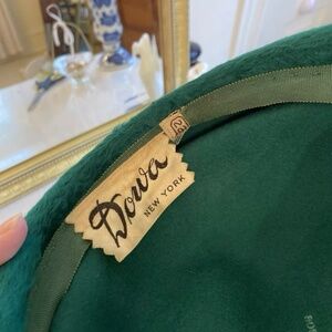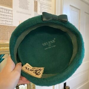 Vintage Selene Made In Italy Faux Fur Beret. Assembled by Dowa New York. Size 22 (tag slightly ripped; see photo). The hat looks to be circa 1940s, but I can’t be sure. Beautiful dark green color w/ an adorable bow on front. In exceptional preowned condition.
