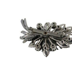 Vintage Selini Floral Rhinestone Brooch Pin In Silver Tone With Blue Stones