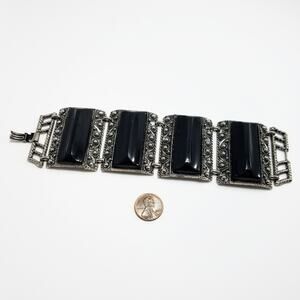 Vintage Selro Style Bracelet, Raised Lucite Black Panels, Chunky Wide