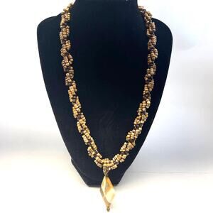 Vintage Semi Precious Braided Stone Necklace Gem Pendant B#6