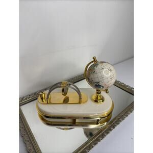 Vintage Semi-Precious Gemstone Globe with Clock Business Card & Pen Holder, Desk