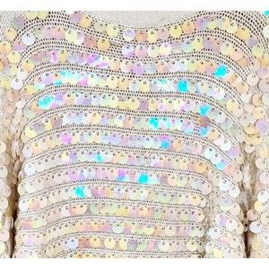 Vintage Women's Semplice Pailette Sequin Dolman Sleeve Cream Sweater 1980s 80s