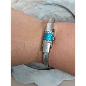 Vintage Senea Brushed Silver Tone Peek a boo Watch Radiant Starburst Pattern