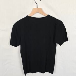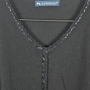 Vintage Sennamei Black Beaded Short-Sleeve Knit Top – Size M