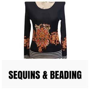 Vintage Sequin Beaded Long-Sleeved Top