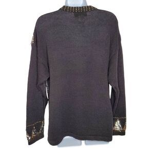 Vintage Sequin Beaded Bling Sweater Black Silver Gold Western Connection L