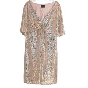 Vintage Sequin Dress Gold Sheath Midi Sz XL SHINY Twist Top Wrap Holiday Party