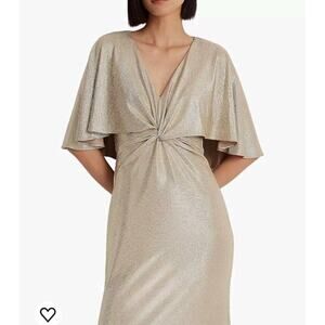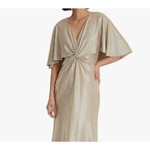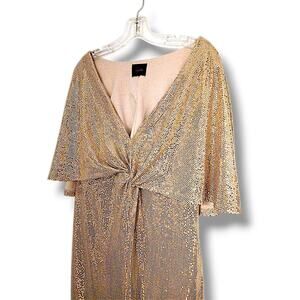 JM Studio John Meyer Gold Sheath Dress Sz XL SHINY Luxe Twist Top Wrap Holiday Party Coquette with Sequins-like gold shimmer fabric. See photos