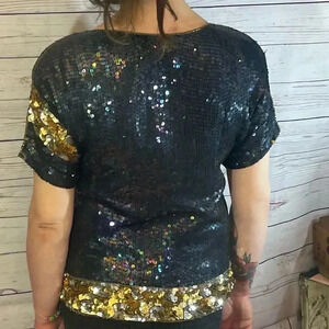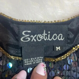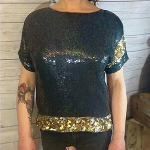 Vintage Sequin 🪩Metallic 💯Silk Party Crop Top 90s Holiday Party Blouse VTG Shirt