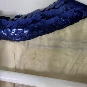 Color/Pattern: Navy blue, silver, and off-white sequins in horizontal stripes