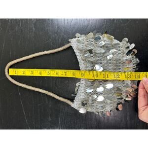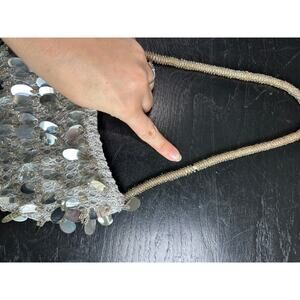 Vintage Sequin- Silver Metallic Mini Bag- fishscale Y2k- broke zipper- some wear