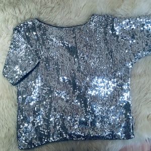 Gorgeous vintage sequined short sleeved blouse by J. L. B. 100% silk with beaded floral design on the front. Blouse is fully lined in silk and is very comfortable to wear. Size L, great gently worn vintage condition.