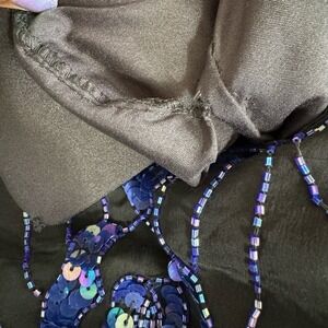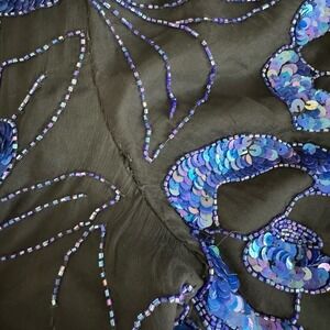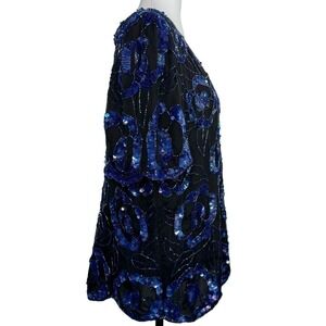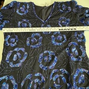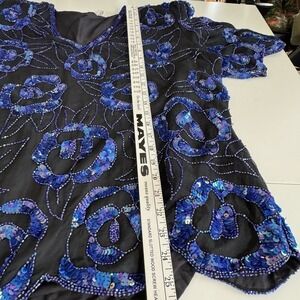Vintage Sequined Top 100% Silk Blouse Glam Laurence Kazar Black Blue Size 1X