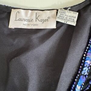 Vintage Sequined Top 100% Silk Blouse Glam Laurence Kazar Black Blue Size 1X