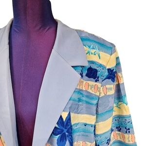 In good vintage condition Vintage Serbin Tropical Hibiscus Flower Open Front Blazer Size 18 Women's.