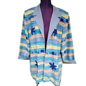 Vintage Serbin Tropical Hibiscus Flower Open Front Blazer Size 18 Women's T34